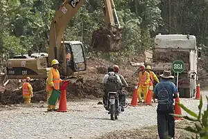 While the highway has been discussed for decades, a $332 million loan from Brazil's National Bank for Economic and Social Development (BNDES), approved by Bolivia in 2011, facilitated the start of construction.[1] Under the terms of the loan, the Brazilian construction firm OAS was to build the road. In June 2011, President Evo Morales inaugurated the project with a ceremony at Villa Tunari. However, neither a final design nor environmental approval had been released for Segment II. Opposition from indigenous residents in the Isiboro Sécure National Park and Indigenous Territory (TIPNIS) and environmentalists led to a protracted public conflict about the highway, ending with the prohibition of highway passing through the park. President Morales has stated that the controversy over the highway has "instilled fear" in potential financial backers of other highway projects in the country.[2]