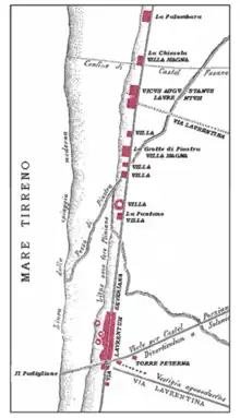 The Villa della Palombara was a large, sumptuous ancient Roman villa. It is now an archaeological site located within the pine forest of Castel Fusano near Ostia, Italy. It originally may have belonged to the famous orator Hortensius (114–50 BC).[1][2] It would have impressed with its exceptional proportions covering about 4 hectares.