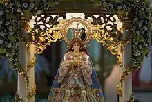 | Attributes | The Blessed Virgin Mary encrusted with jewels, golden crown, aureole and moon. |