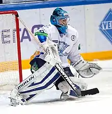 Vitali Mikhailovich Yeremeyev (Russian: Виталий Михайлович Еремееев; born September 23, 1975) is a Kazakhstani former professional ice hockey goaltender. He played 4 games in the National Hockey League with the New York Rangers during the 2000–01 season. The rest of his career, which lasted from 1992 to 2014, was spent in the Russian Superleague and Kontinental Hockey League. Internationally Yeremeyev played for the Kazakhstani national team at several World Championships and the 1998 and 2006 Winter Olympics.