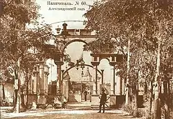 The park was established in 1880 and initially was called Alexandrovsky Garden in honour of the 25th anniversary of the reign of Emperor Alexander II.[2] In 1894 the Alexander Column, an 11-meter copy of the Alexander Column erected in Saint Petersburg, was installed. The project was undertaken by Rostov architect Nikolai Durbach. In 1998, the column got the status of a cultural heritage site of local significance.[3]
