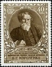 The Soviet biographer F. Kuleshov praised Korolenko as "the defender of the oppressed" and a "truth-seeker, ardent and riotous, who with the fervency of a true revolutionary fought the centuries-long traditions of lawlessness."[24] According to this critic, the writer's unique persona united in itself "a brilliant story-teller..., astute psychologist, great publicist, energetic, tireless social activist, a true patriot and very simple, open and modest man with crystal clear, honest soul."[24] Maxim Gorky, while crediting Korolenko with being a "huge master and fine stylist," also opined that he did a lot to "awaken the sleeping social self-awareness of the majority of Russian nation".[24]