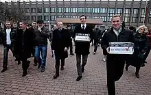 Kumets now lives and works in Poland and continues his political activities.[23][24][25] In February 2012 he and his colleagues started the public initiative We Demand Answers! and he serves as a press secretary for Revolution Through Social Networks..[26][27] The campaign regularly organizes protesters in the centers of Belarusian cities, and aims to unite political activists who've been coercively recruited by the KGB, "to fight for their constitutional rights and to urge those responsible to justice."[28]