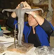 Kush predominantly works in the medium of oil painting on canvas or board, with many of the original paintings also sold as limited edition giclée-on-canvas prints. His bronze-colored sculptures are small-scale and usually based on imagery from his paintings, such as Walnut of Eden and Pros and Cons.[14] Although his style is frequently described as surrealist, Kush himself refers to it as "Metaphorical Realism" and cites the early influence on his style of Salvador Dalí's surrealist paintings as well as landscapes by the German romantic painter Caspar David Friedrich.[15] The artist was greatly influenced by the work of and personal acquaintance with the French ‘magic realist’ Claude Verlinde whose paintings, full of an acute sense of drama in the story of man and his times, often paradoxical in appearance, are, perhaps, closest to his own metaphorical style.