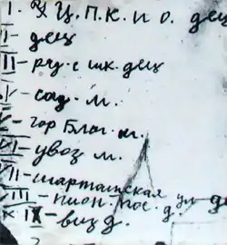 It is not known when Vinnichevsky committed his first murder, since the investigators could not find the relatives of the first victims, about whom Vinnichevsky gave evidence.[3] To commit his crimes, Vinnichevsky would go around yards, saying that he was under the orders of the Komsomol organization for the sponsored Pioneer squads collecting scrap metal, and therefore went around neighborhoods, figuring out which residents had scrap.[4]
