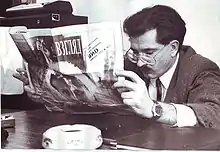 Listyev was arguably the most popular journalist and TV anchor in Russia (he remains well remembered years after his death), and was a key force in bringing the voice of democracy to Russian television. Listyev first appeared on television as one of the hosts of a progressive and successful show Vzglyad (Glance or Outlook) in the late 1980s. Vzglyad was an outstanding show for that time, after the premiere many people thought it was allowed on TV only by some mistake of censors. The program was ‘like a fresh wind’, it raised the questions that never before were allowed for public discussion, such as Stalin's Great Purge, death penalty, reconstruction of the Cathedral of Christ the Saviour.[1] The program was watched weekly by as many as 100 million people.[2] The other anchors were Alexander Lyubimov, Alexander Politkovsky, Dmitry Zakharov, Artyom Borovik and Evgeny Dodolev.[3]