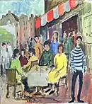 Another day, Diego swiftly completed a gouache of a Paris "Café Scene" as a second gift to his nephew, also dated 1957, and signed "D. Voci", which Tony since gave to his son, Chris Voci.[11][14] View serious works by Diego in Gallery Section.