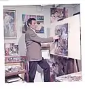 The sequence of four women entering Diego's life and the impact on Diego's success cannot be overestimated. First, 1960 was Helga for 25 years.[10] Then, in 1965 Joy Gibson, a Canadian art dealer opened a location in Zweibrucken, Germany between the Canadian and the American Air Force bases.[3][13] As Diego's agent for seven years, she with assistance of Jawdat Naffouj who became her husband, opened Naffouj Gallery in Landstuhl which Jawdat still runs today.[18] The Naffouj's introduced the iconic Diego signature which dominated Diego works for the next two decades. They turned art buyers into devoted Diego collectors throughout Germany, USA and Canada; they also published eight Diego lithographs.[13][18] In 1972, Lillian Dussard who worked for Naffouj Gallery, became Diego's agent to the Department of Defense locations until she went to US and opened her own gallery in Stafford, Virginia.[13] In 1974 Christine Kahn took over the agent responsibilities for Diego for the next decade.[19] All 3 women worked closely with Helga.[10] Christine and Helga's friendship continues into present time.[10][19]