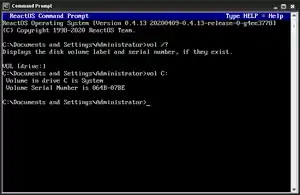 vol commandThe command is available in various versions of DOS,[2] DR FlexOS,[3] IBM/Toshiba 4690 OS,[4] IBM OS/2,[5] Microsoft Windows,[6] and ReactOS.[7]
