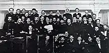 After settling in Paris, Volin met a number of anarchists, including the French Sébastien Faure and the Russian Apollon Karelin. By 1911, he had committed himself to anarchism, leaving the Socialist Revolutionary Party and joining Karelin's Brotherhood of Free Communists.[6] With the outbreak of World War I, Volin immediately joined the anti-war movement, catching the attention of the French authorities.[7] He managed to evade capture and fled to the United States in 1915. Upon arriving in New York City, he joined the Union of Russian Workers, a Russian American anarcho-syndicalist organisation. He soon joined the editorial staff of its newspaper, Golos Truda, and in December 1916, he went on a speaking tour of North American cities. In the wake of the February Revolution, Volin returned to Russia.[8] In July 1917, he and his colleagues from Golos Truda arrived in Petrograd, where they restarted publication of their newspaper, now propagating anarcho-syndicalism directly to the workers of the Russian capital.[9]