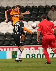 A volley is an air-borne strike in association football, where a player's foot meets and directs the ball in an angled direction before it has time to reach the ground. A volley can be extremely hard to aim and requires good foot-eye coordination and timing.[1] The half volley is a similar concept, but occurs when the ball has just bounced from the ground rather than in the air.