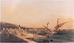 In May 1821, at the beginning of the Greek Revolution, the Greek rebels of Mount Pelion tried to capture the fortress but failed.[11] On 8 April 1827, the Greek fleet, under the command of the British philhellene Frank Abney Hastings, captured five Ottoman ships in the city's harbour and forced the local garrison to evacuate the fortress.[11] The provisional government of Greece claimed Volos as part of Greek national territory, but the Treaty of Constantinople (1832), which established a Greek independent state, set its northern boundary along a line running south from Arta to Volos.[15] Volos was incorporated into the Greek Kingdom in November 1881 with the rest of Thessaly.[11]