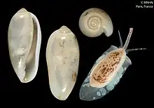 | Shell and animal of Volvarina mauricetteae (holotype at MNHN, Paris) | |