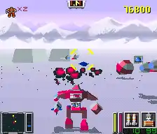 The player pilots an experimental mech called the Morphing Battle System against the five worlds of the Aki-Do Forces.[2] The player enters the Vortex, to save the Deoberon system, retrieving the core from the fierce forces, the Aki-Do. The MBS can transform between four different modes: The Walker, Sonic Jet, Land Burner, and Hard Shell.