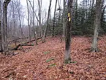 Typical hardwood forest in fall along yellow-blazed loop trail