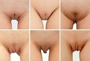 ![]() Examples of different vulvas (pubic hair removed in some cases) | |