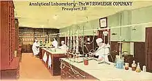 Postcard of the Rawleigh Analytical Laboratory in Freeport, Illinois.