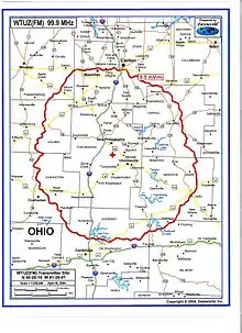 WTUZ (99.9 FM) is an American radio station with studios located in New Philadelphia, Ohio, serving Tuscarawas County and surrounding counties. WTUZ's primary signal covers 965 square miles (2,500 km2). The population within this primary coverage area is approximately 120,000.
