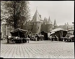 In 1617, the former city gate was repurposed as a weigh house, a public building where various goods were weighed.[5] This new weigh house was needed to relieve the Waag op de Dam, the original weigh house on Dam square, which had become too small for the needs of the rapidly growing city.