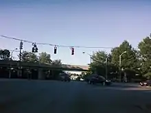 Wabash Avenue actually begins as a stub near the Reisterstown Road Plaza. The stub exists where a longer road was intended as part of the original plans of Interstate 795. This portion of I-795, which would have run through historic Sudbrook Park before reaching the city, was fought and ultimately cancelled as a result of complaints from Sudbrook Park residents.[1] This led to the cancellation of all parts of I-795 within the city, and its truncation to I-695 (the Baltimore Beltway) near the suburb of Pikesville. Still, the road was constructed as a Boulevard, and the Metro Subway was constructed along an overhead track directly parallel to the road.[2] Three stations of the Metro system (Reisterstown Plaza, Rogers Avenue and West Coldspring) are located along Wabash Avenue.