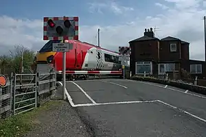 ![]() Station house shown to the right of the level crossing. | |