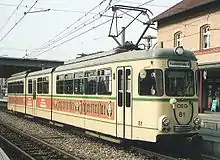 Waggonfabrik Rastatt (English: Rastatt Coach Factory) is a German public-limited company based in Rastatt in the state of Baden-Württemberg in southwestern Germany. Its chief products are tramway vehicles and railway coaches and wagons. The firm was founded in 1897 and built, for example, tramways for the Upper Rhine Railway Company (Oberrheinische Eisenbahn-Gesellschaft or OEG), Karlsruhe Transport Company (Verkehrsbetriebe Karlsruhe GmbH) and Stuttgart Tramways (Stuttgarter Straßenbahnen AG). In its early days it also built rolling stock for the Grand Duchy of Baden State Railways.