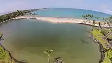 ʻAnaehoʻomalu Bay, also known as A-Bay, is a palm fringed beach, shallow water bay located on the South Kohala coast on the island of Hawaii.[2] ʻAnaehoʻomalu is best known for its sunsets, snorkeling and historic royal fishponds. The nearest town is Waikaloa Village, which used to be owned by Parker Ranch.