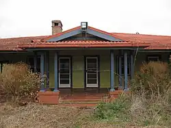 Up to 1890 the cattle industry in north Queensland struggled for profitability because the supply of cattle greatly exceeded demand, and cattle prices were depressed.[15] This appears to be borne out by the Wairuna lease being held by the Bank of New South Wales as mortgagor for James Atkinson from 26 September 1887, which was still the case in 1900.[16] However, Geoffrey Bolton states that "[g]radually between 1870 and 1890 most of the northern graziers achieved, if not prosperity, a modest standard of comfort". The usual type of homestead residence was represented by Gunnawarra, "a comfortable house with slab walls and floors and a very large stone and antbed fireplace".[17] Similarly, the Wairuna residence in 1900 was a modest slab house with a corrugated iron roof on the site of the current residence.[1][18]
