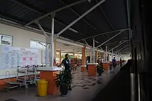 The Wakaf Bharu railway station is a Malaysian train station stationed at and named after the town of Wakaf Bharu, Tumpat, Kelantan. This is nearest station accessible to Kota Bharu, state capital of Kelantan.