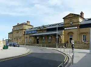 Wakefield Kirkgate railway station is a railway station in Wakefield, West Yorkshire, England. Unlike the nearby Wakefield Westgate railway station, Kirkgate is unstaffed.[1] The station is managed by Northern but also served by Grand Central. It is on the Hallam, Pontefract and Huddersfield lines. It has a limited number of services to London King's Cross.