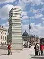 The installation of the statue "Der moderne Buchdruck" (Modern Book Printing) took place on April 21, 2006 at Bebelplatz opposite Humboldt University. The assembly of this 12.2-metre-high (40 ft) object on the street Unter den Linden took three days.