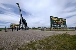 The town is most famous for the Wall Drug Store, which opened as a small pharmacy in 1931 during the Depression, but eventually developed into a large roadside tourist attraction.[10]
