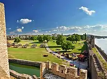 Dating from the late 14th century, the limestone wall once enclosed the whole of the medieval town. | |