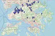 There are four villages in Ho Sheung Heung, namely Nam Pin Wai, Pak Pin Wai, Chung Sum Tsuen and Chung Wai Tsuen (San Tsuen).[17] | ![]() |