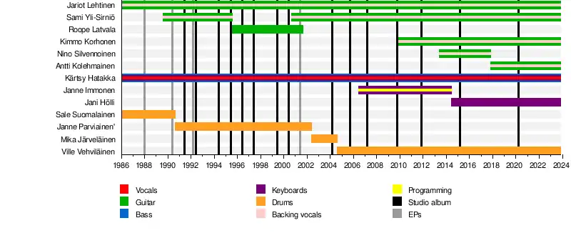 • Kärtsy Hatakka — bass, lead vocals, keyboards (1986—present)