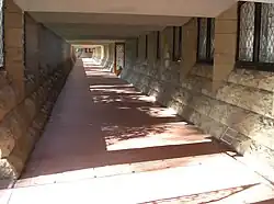 Other work the Griffins did during this time included the Melbourne subdivisions of Glenard[15] (where the Griffins built their own Knitlock house "Pholiota") and Mount Eagle[16] at Eaglemont, and the Ranelagh Estate in Mount Eliza Victoria 1924. The Ranelagh Estate was listed on the Victorian State Heritage Register (H01605) in 2005 as a significant example of a country estate. Prior to 1920 the Griffins also designed the New South Wales towns of Leeton and Griffith.[17] Griffin and architect J Burcham Clamp designed a large tomb built at Waverley Cemetery, Sydney, between 1914 and 1916 for James Stuart, which still stands as a good example of Griffin's sense of 'human-scale monumentality'.[18]