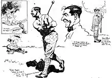 Hagen developed his golf game at the Country Club of Rochester, beginning as a caddie, and earned money to help support his family from pre-teen age. He earned ten cents per round and was occasionally tipped another five cents.[5] Hagen played golf at every chance he got; caddie access to the course was limited to off-peak times, as it was elsewhere in the U.S. during that era. Hagen, with assistance from head professional Alfred Ricketts,[5] gradually improved his golf skill to the stage where he was an expert player by his mid-teens, and was then hired by the club to give lessons to club members and to work in the pro shop. He made his top-class professional debut at age 19 at the 1912 Canadian Open, placing 11th, a good showing. Hagen followed up with a surprise 4th place showing at the 1913 U.S. Open at Brookline where he stated that he was treated badly by the other professionals who knew nothing about him. Hagen said "they pushed me off the tee and told me I could practice when they were through". He vowed to play in the 1914 U.S. Open and "win it", and he did exactly that.[6]