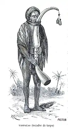 One of the central aspects depicted in many Warli paintings is the tarpa dance. The tarpa, a trumpet-like instrument, is played in turns by different village men. Men and women entwine their hands and move in a circle around the tarpa player. The dancers then follow him, turning and moving as he turns, never turning their backs to the tarpa. The musician plays two different notes, which direct the head dancer to either move clockwise or counterclockwise. The tarpa player assumes a role similar to that of a snake charmer, and the dancers become the figurative snake. The dancers take a long turn in the audience and try to encircle them for entertainment. The circle formation of the dancers is also said to resemble the circle of life.