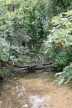 There is significant soil erosion along the banks of Warrior Run.[5]