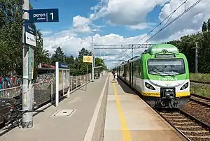 Warszawa Jeziorki railway station is a railway station in the Ursynów district of Warsaw, Poland. It is served by Koleje Mazowieckie, who run services from Warszawa Wschodnia to Góra Kalwaria and Skarżysko-Kamienna.