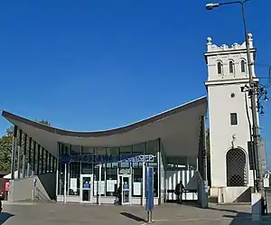 ![]() West entrance to the platforms with the ticket office, located on the level of Aleje Jerozolimskie on the edge of the terrace of the Vistula next to the Poniatowski Bridge's little tower | |||||||||||||||||||||||||||||||||||||||||||||||||||||