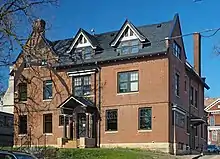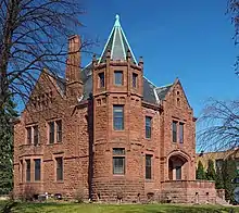 The Eugene Merrill House, at 2116 Second Avenue South, was built in 1884 by banker and lawyer Eugene Merrill,[2] to designs by William Channing Whitney (1851–1945). The Merrill House is the oldest mansion in the district. Its rusticated red sandstone, bold massing, polygonal tower and characteristic clustered fenestration are marks of the Richardsonian Romanesque architectural style. It is now owned by Rhett A McSweeney and is the offices of McSweeney/Langevin.
