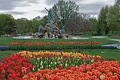 Washington Park is the site of many festivals, concerts, and special occasions. The Tulip Festival held every year since 1949 in Washington Park is highlighted by the blossoming of 200,000 tulips throughout the park.[29] The African-American tradition of Pinksterfest, whose origins are traced back even further to Dutch festivities, was later incorporated into the Tulip Fest and since 1998 the Tulip Fest has also included the Mother of the Year award.[30] The Latin Festival and the Columbus Day Parade and Italian Festival are some of the ethnic festivals held every year in the park.[29][31] The city, the Albany Police Athletic League, and Hannaford supermarkets sponsor the Capital Holiday Lights every winter, with 125 displays through the park. Proceeds benefit juvenile crime prevention programs.[32]