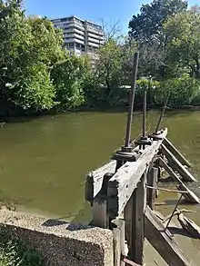The complex sits near the eastern terminus of the Chesapeake & Ohio Canal, which operated from 1831 to 1924 and is now a National Historical Park. The remains of the gravity dam across Rock Creek, as well as Waste Weir #1 are at this site.[22] Land once owned by the canal company was part of the 10-acre (4.0 ha) site purchased in 1960 by the project's developer, Rome-based Società Generale Immobiliare (SGI).[23]