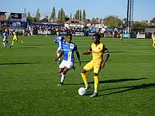 Wealdstone Football Club (/ˈwiːldstoʊn/ WEELD-stone) is an English semi-professional football club based in Ruislip, London Borough of Hillingdon, and affiliated to the Middlesex County Football Association.[3] They currently play in the National League, the fifth tier of English football, having been promoted as champions of the National League South for the 2019-20 season. While established in 1899, it has roots dating to 1887 and was created through a series of local mergers in Wealdstone, then in Middlesex.[4] For most of its existence the club was based at Lower Mead stadium in Harrow, until 1991. After a long period of homelessness and ground sharing with various local clubs, since 2008 they have been based at Grosvenor Vale. Their traditional colours are royal blue and white, and they are nicknamed "The Stones" or "The Royals".