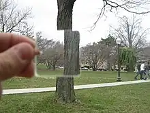 Figure 3. View through 10 factor wedge prism of an "OUT" tree.