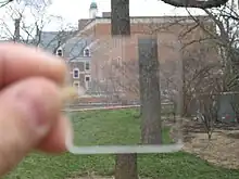 Importantly, the bottom edge of the prism must be roughly parallel to the ground in order to provide an accurate estimate on sloped ground. Wedge prisms can be difficult to use in wet conditions due to the effect water droplets have on the optical properties of the glass. Wedge prisms come in different colors such as clear or amber. The amber provides the same function as the clear wedge prism, only it reduces glare and is easier to use on overcast or cloudy days. Operating a wedge prism is one technique used in forestry today because the wedge prism is simple, relatively inexpensive, portable, and as accurate as other angle gauges when properly calibrated and used properly. One simply holds the prism directly over the plot center,[3] and by focusing on a tree, the refracted light will offset the trunk of the tree. The wedge prism is used to take measurements in both land management and in timber procurement. Other tools often used to accompany the wedge prism in taking forest inventory are clinometers, Biltmore sticks, relascopes, and diameter tapes.