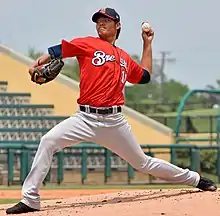 ![]() Wang pitching for the Oakland Athletics in 2019 | |