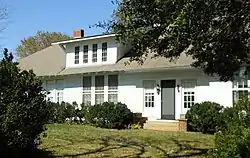 The house was built around 1920. It is a "a rambling twelve room clapboard bungalow little changed since c.1920. It has a hipped roof with broad eaves and a shed dormer decorated with angular brackets. The exterior is clapboard irregularly fenestrated with 6/6 wooden sash windows. There are four exterior brick chimneys. Two board and batten 'cabins' adjoin the rear with gabled and shed additions to the west end."[2]