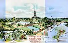 The park became a sizeable pleasure garden that boasted cricket & football grounds, a large running track, tea pagodas, bandstands, a lake, a nine-hole golf course, a variety theatre and a trotting ring. Served by the new Wembley Park station, it officially opened in May 1894, though it had in fact been open on Saturdays since October 1893 to cater for football matches in the pleasure gardens.[15]